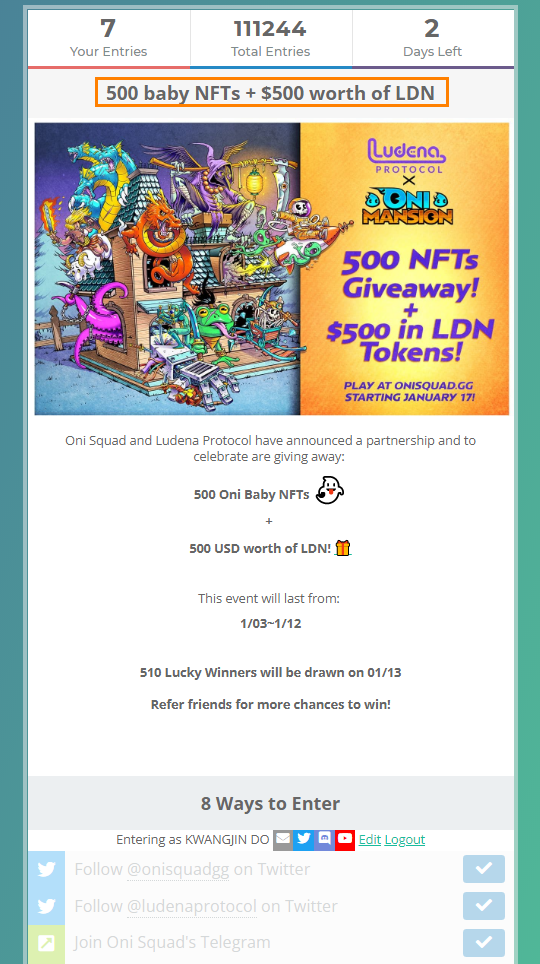 500Baby NFTs+500$ LDN 이벤트 (1/3~1/12)