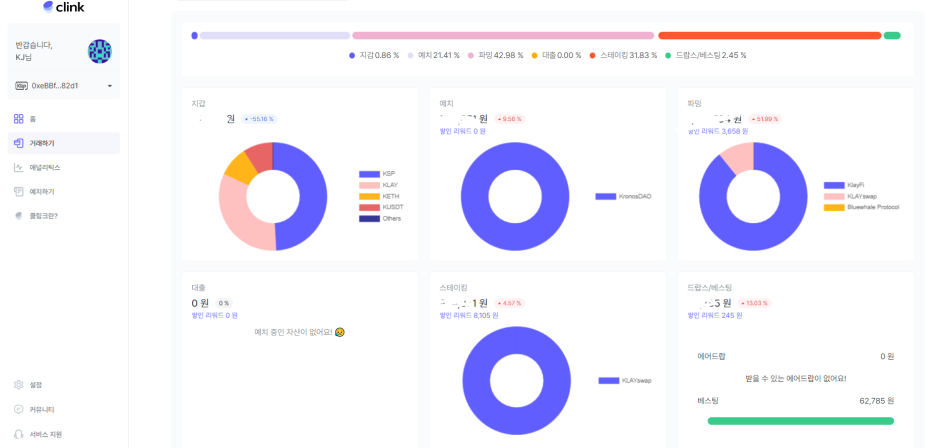 디파이 대시보드 서비스 Clink 입니다.