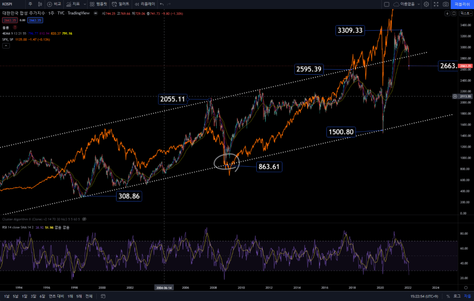 S&P도 급격한 각도로 올라갔고 되돌림이 언제 올지 모르는데 미국 시장이 하락을 크게 맞으면 자금회수로 투자금 회수가 들어갈 수 있고 외국인 의존도가 있는 코스피도 영향을 크게 받을 수 있습니다. 미국에서 기침하면 많은 국가들이 감기걸리는 상황이죠.