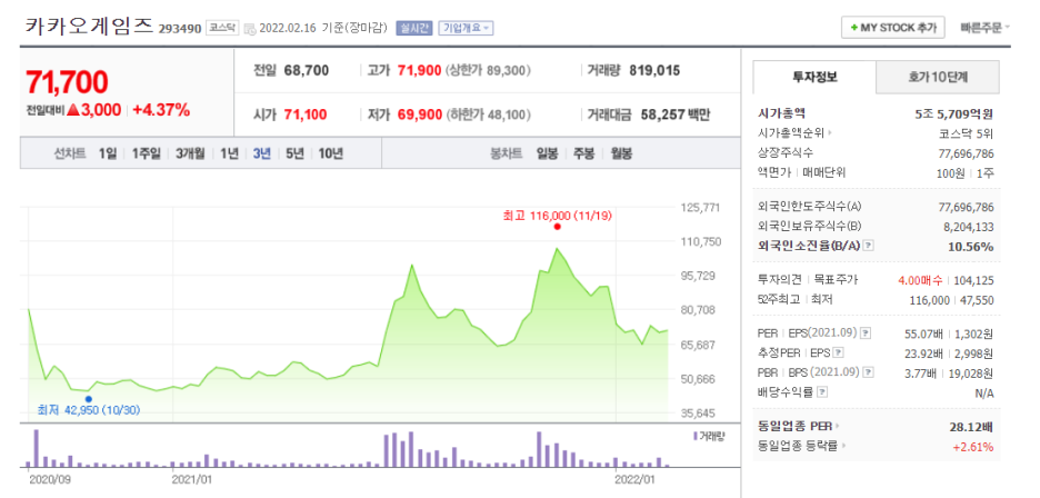 [293490] 카카오게임즈주가