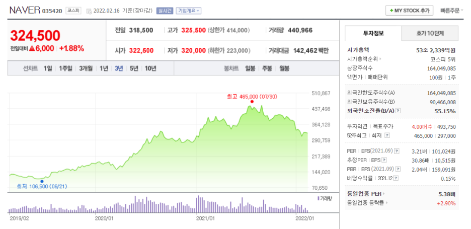 [035420] 네이버주가