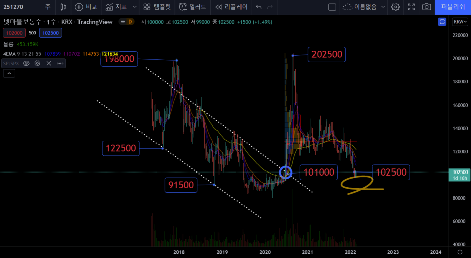 넷마블의 블록체인 게임들이 속속 나오고 있어 관심을 갖고 있고 하단자리 분할 매수 시작했습니다.