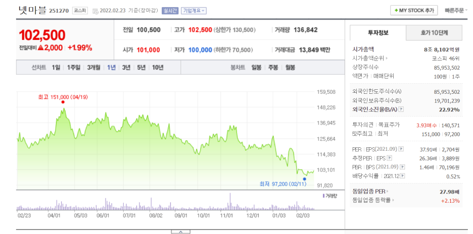 #국내주식 #넷마블 #251270