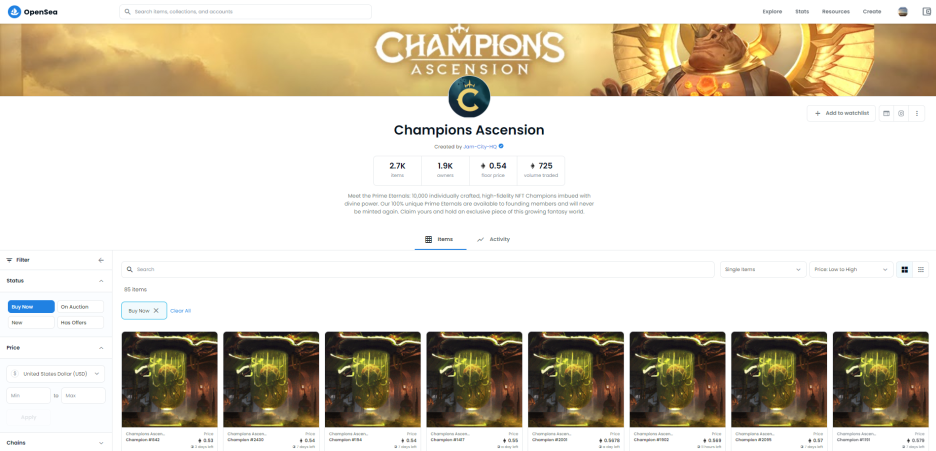 ㄴ OpenSea 실거래가 : 오픈되지 않은 챔피언 0.53 ~ 0.62ETH