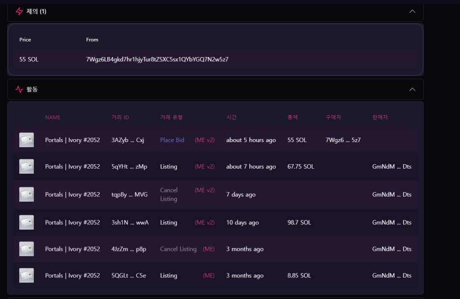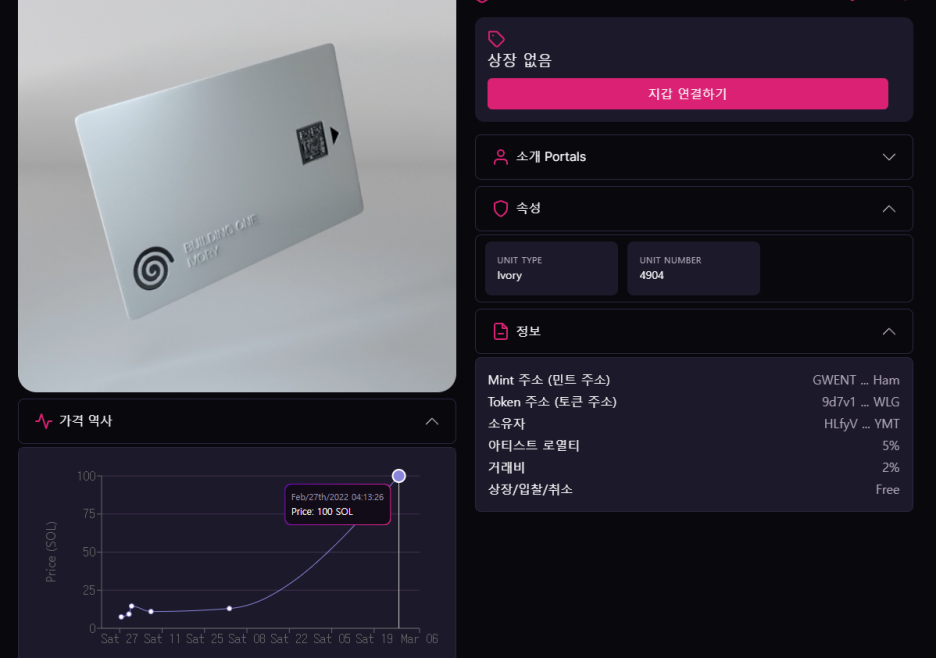 Potals Ivory를 살펴보니 3달 전에 8.8솔에 리스팅했다가 취소하고 10일전에 98솔로 리스팅을 변경한 이력이 있네요.