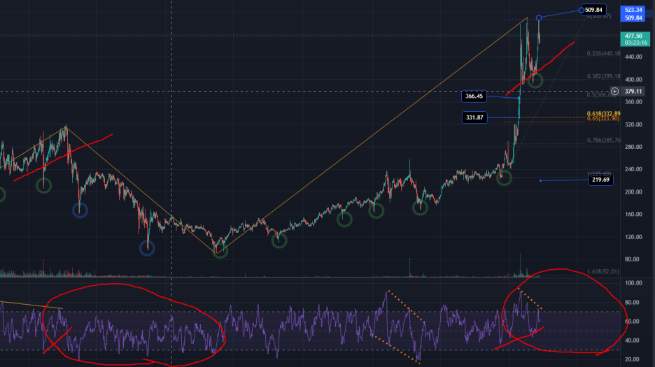 2021년 전반적인 흐름을 보시면 1월에서 4월 중순까지 상승 그 이후 6월말까지 하락 그 이후는 계속적인 상승을 이어오고 있습니다. 다른거래소 포함 현물거래만 상장되어 있기 때문에 상승시기에 아래 꼬리에서 매수하는 전략이 효과적인 방법이였을 것이라고 생각합니다. (하락시기인 파란원 시기 제외)