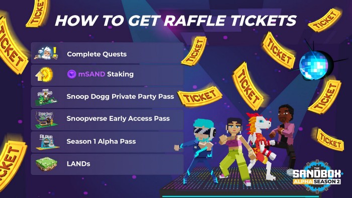 Alpha Season 2 Raffle은 참여하는 플레이어에게 매우 탐나는 Season 2 Alpha Pass를 획득할 수 있는 기회를 제공합니다. 알파 패스를 사용하면 플레이 투 적립 활동을 최대 1,000 SAND로 변환할 수 있습니다.