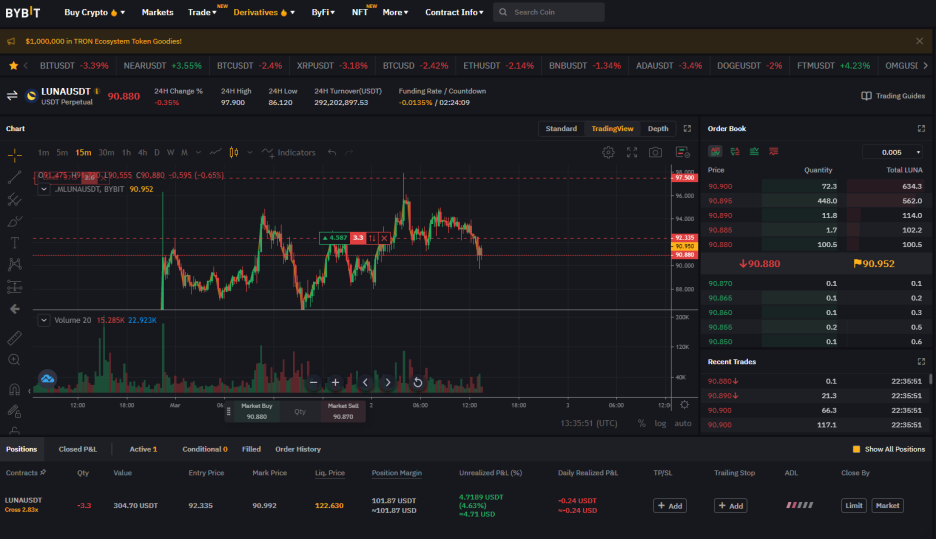 LUNA를 좋아하고 추가 상승이 더 있을 수도 있지만 오버슈팅이 나온 것 같아 저배로 숏에 진입해 있습니다.