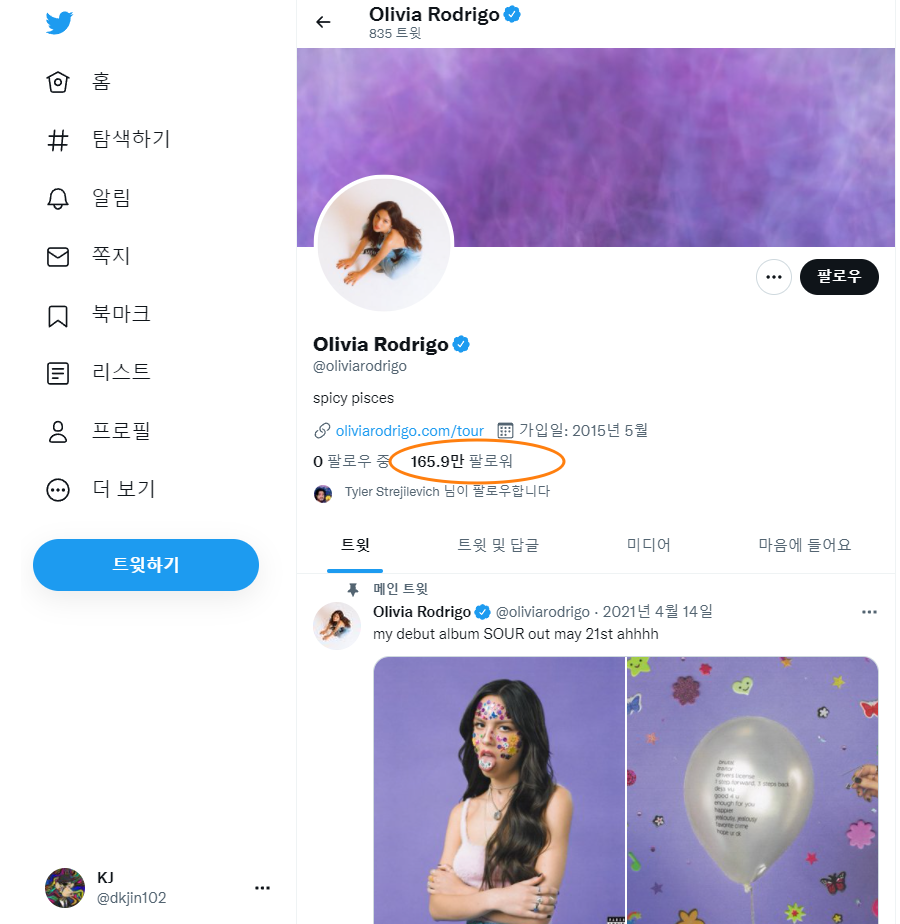 2021년 1월 Drivers License 싱글 발매로 빌보드 핫 100 1위에 올랐으며 2021년 5월 21일 데뷔앨벌 Sour를 발매.