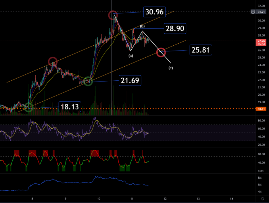 하단 채널을 깨고 내려와야 수익권으로 들어 갈 수 있겠고 조정반등이 어느정도 나올건지 고민해보고