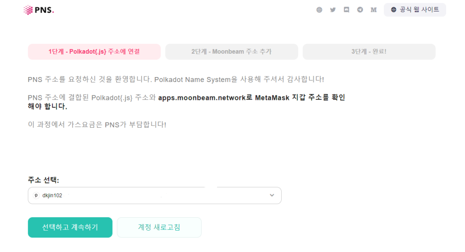 Moonbeam에서 내 PNS 도메인을 요청한 후 내 polkadot{.js} 지갑 주소가 여전히 PNS 도메인과 연결되어 있습니까?