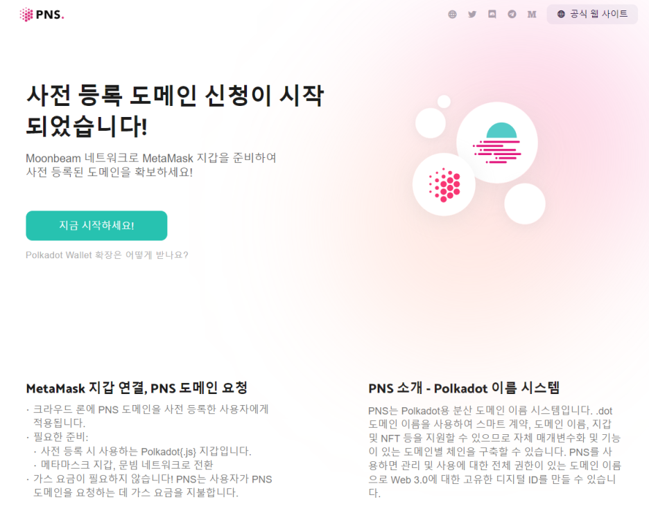 PNS는 Polkadot용 분산 도메인 이름 시스템입니다. .dot 도메인 이름을 사용하여 스마트 계약, 도메인 이름, 지갑 및 NFT 등을 지원할 수 있으므로 자체 매개변수화 및 기능이 있는 도메인별 체인을 구축할 수 있습니다. PNS를 사용하면 관리 및 사용에 대한 전체 권한이 있는 도메인 이름으로 Web 3.0에 대한 고유한 디지털 ID를 만들 수 있습니다.