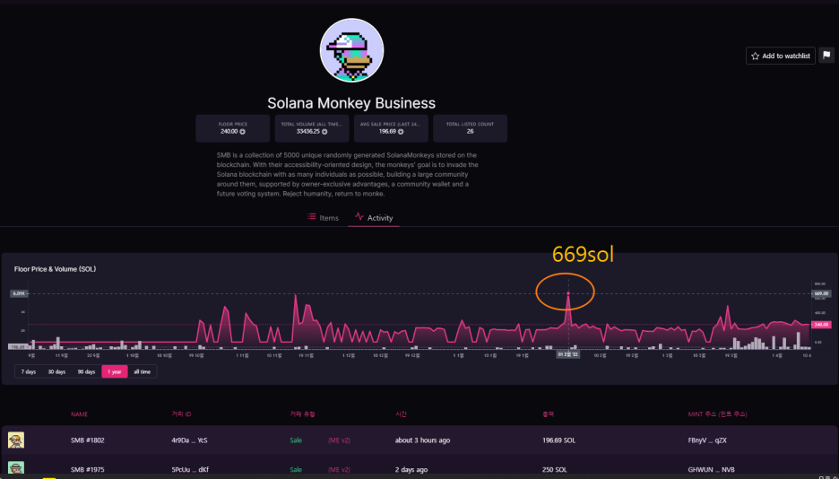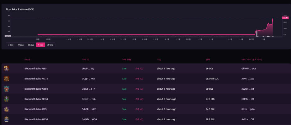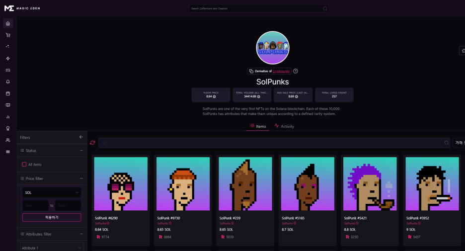 #솔라나 #NFTs #매직에덴 #가격그래프지원