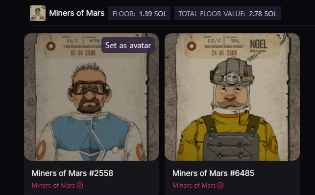 Miners of Mars is a collection of algorithmically generated characters hand-drawn on paper by Aleksa Gajić and minted as NFTs on the Solana blockchain.
