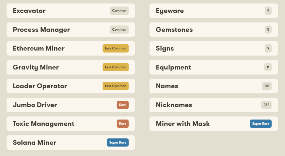 이더리움 마이너, 그래버티 마이너, 래더 오퍼레이터의 직업군이 Less Common
