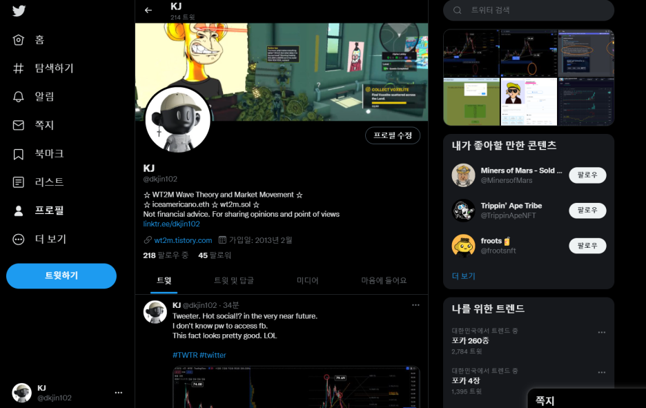 KJ @ dkjin102 ☆ WT2M Wave Theory and Market Movement ☆ ☆ iceamericano.eth ☆ wt2m.sol ☆ Not financial advice. For sharing opinions and point of views http:// linktr.ee/dkjin102 wt2m.tistory.com