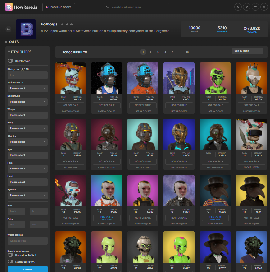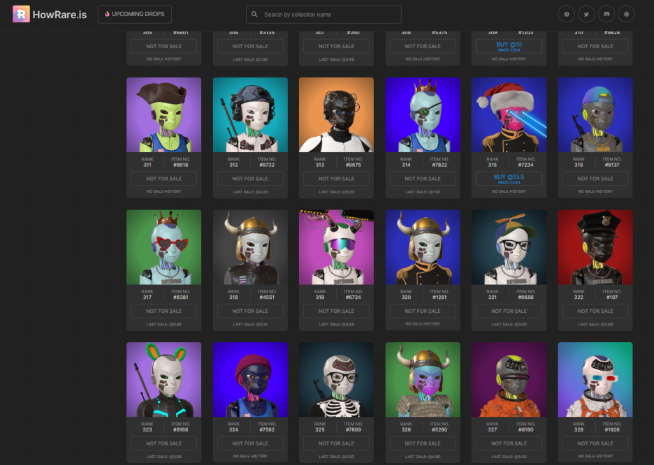 HowRare.is의 상위 봇들의 모습입니다.
