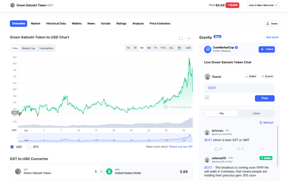 현재 실시간 Green Satoshi Token 시세 는 $5.81 USD