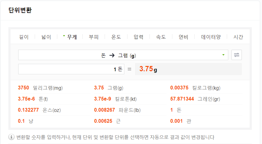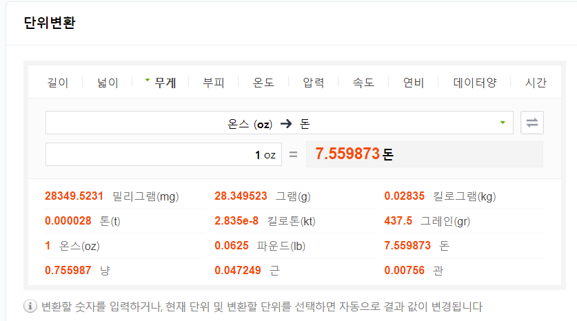 국제시세를 보기위한 온스와 돈 단위환산입니다. 1온스 7.5돈이 좀 넘습니다.