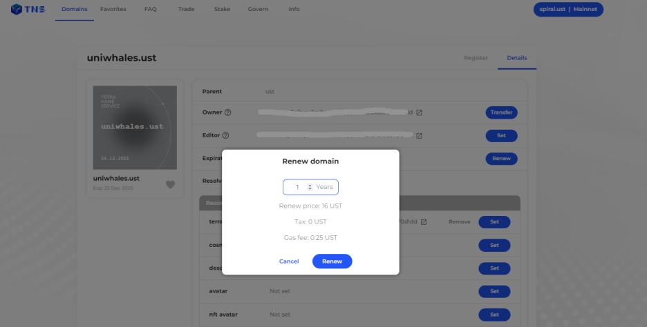 1년 리뉴얼 가격은 16UST 정도로 원래대로라면 2만원이 좀 넘겠네요. (수수료 0.25UST 필요)