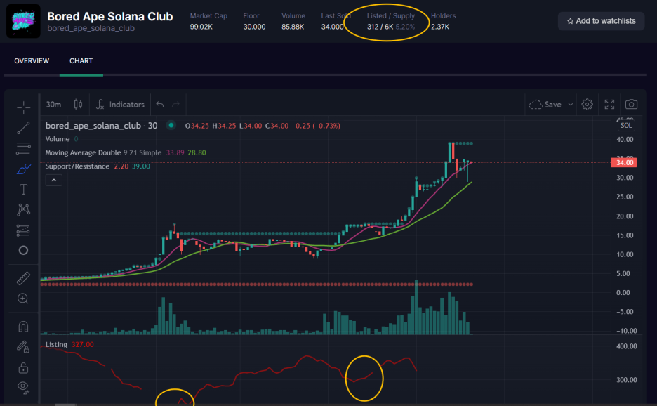 현재까지는 15~34솔 사이에서 운영 폭이 되어 있고 리스팅 숫자의 증가가 많지 않고 매수 후 좀 더 지켜보려는 홀더들이 증가하는 것으로 보이기 때문에 리스팅 숫자 변동에 따라서 다르겠지만 추가적인 도약도 가능할 것으로 보여집니다.