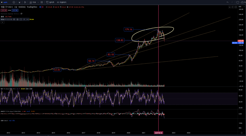 되돌림이 크게 온다면 1.5~2년 정도 하방 진행을 지켜보고 저가에 담을 기회를 노려봐야 겠습니다.