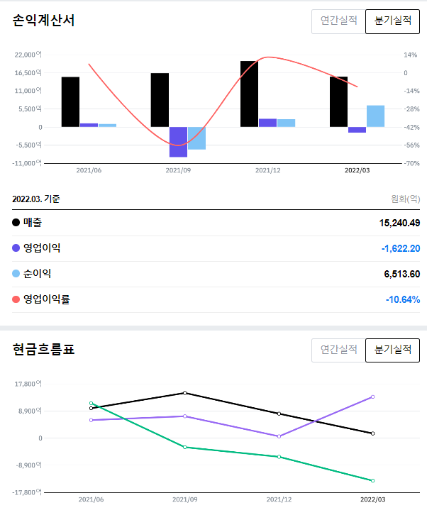 22년 1분기 영업이익 적자를 기록했습니다.