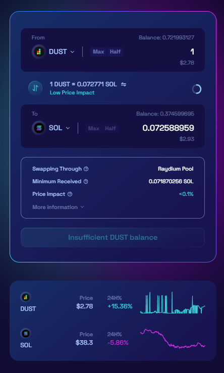 *Dust (dust protocol) 제로 토큰으로 시작한 솔라나 블록체인의 토큰으로 디가드 NFT를 스테이킹하거나 버닝으로만 민팅