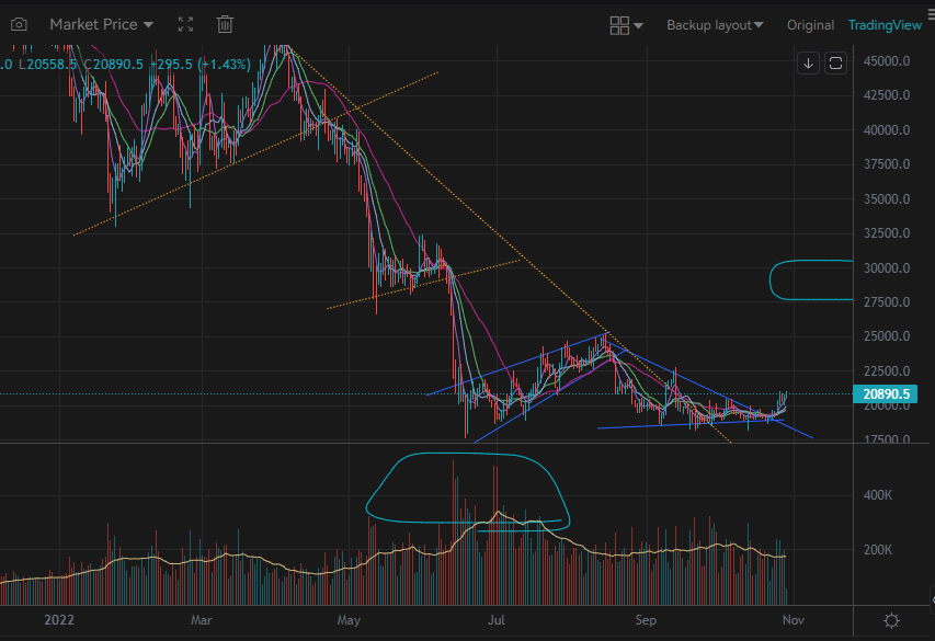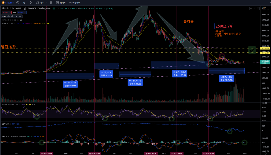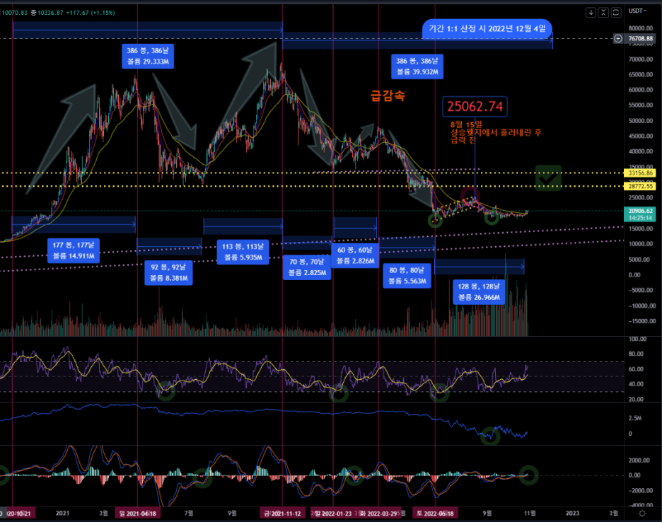 상승 트랜드 진행 시에도 3만불을 넘는 시기 및 방법이 이후 차트를 그려가는데 가장 큰 영향성이 있을 듯
