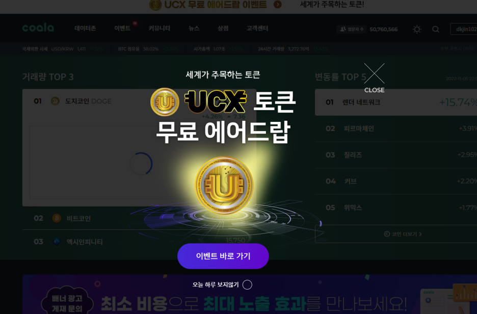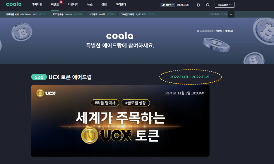 2. 이벤트 참여로 11월 23일 UCX 토큰 증정