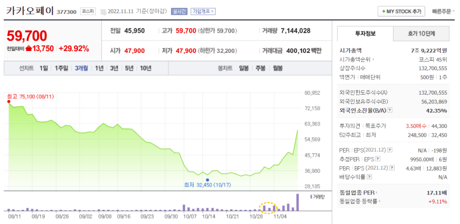 이 중 카카오페이는 어제 상한가를 기록했습니다.