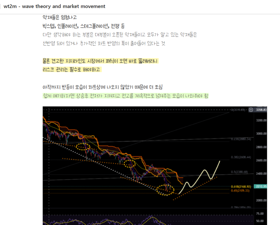 어느정도 반등했다가 어떠한 계기로 다시 하락으로 간다면 크게 하락이 나올 가능성이 있고