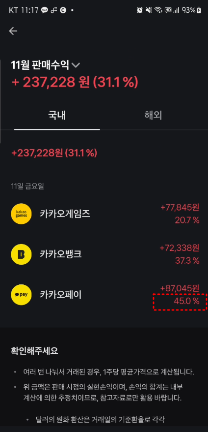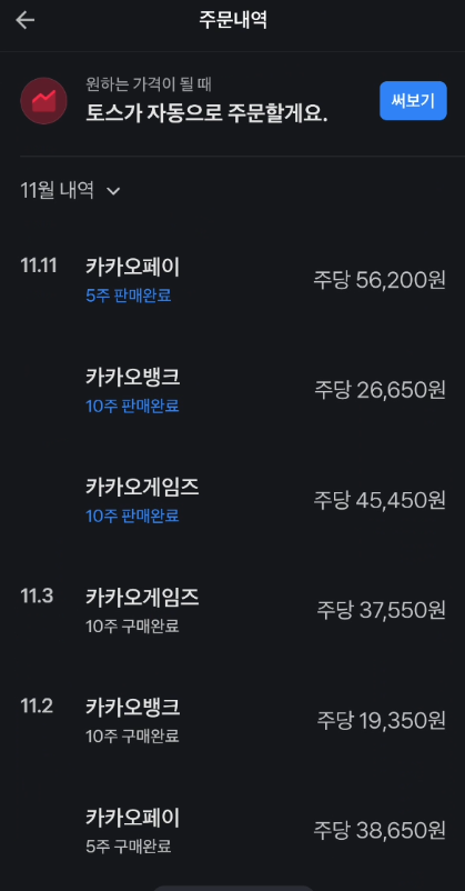 11월2~3일 매수했고 일주일 정도 보유했네요.