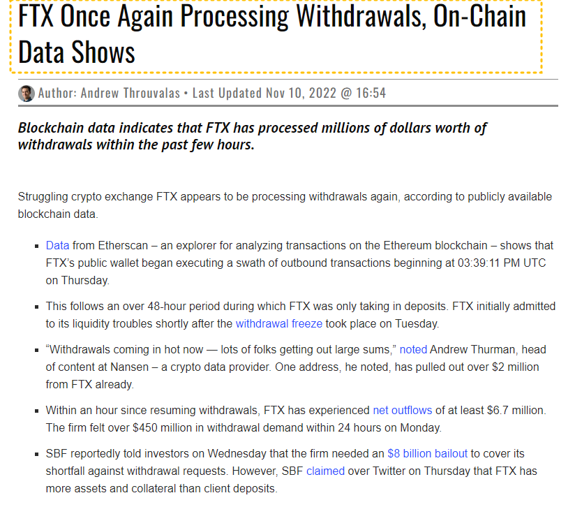 FTX의 출금을 지원해주면서 날개를 달개됨