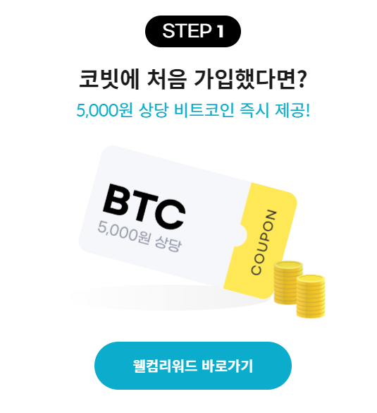2) 웰컴리워드 : 알림설정 모두 수신 선택시 웰컴리워드 5,000원 상당 BTC 지급