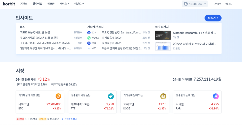 코빗 인사이트에서 뉴스/공시/리서치 내용 확인 가능