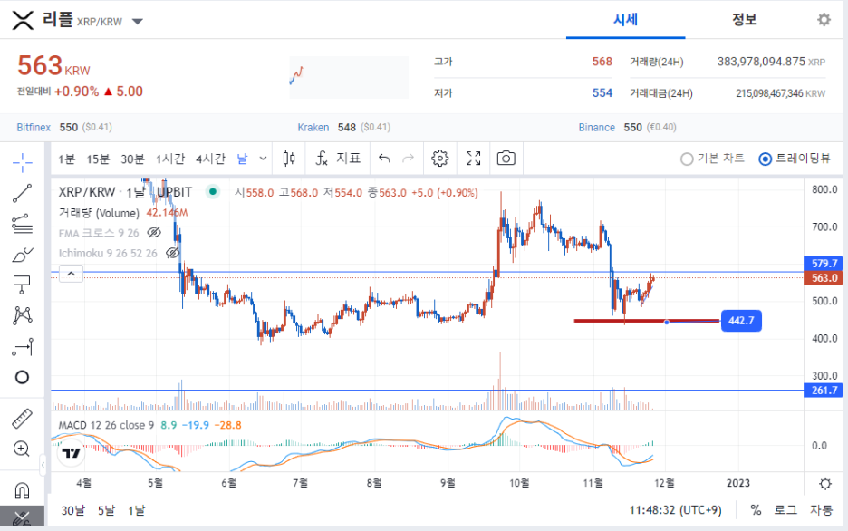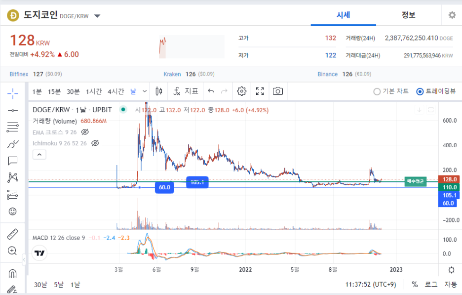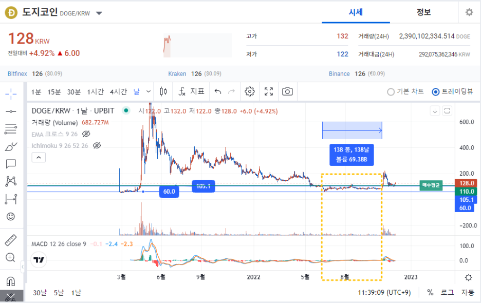도지 보다는 못하지만 유사하게 기존 밴드 폭을 돌파