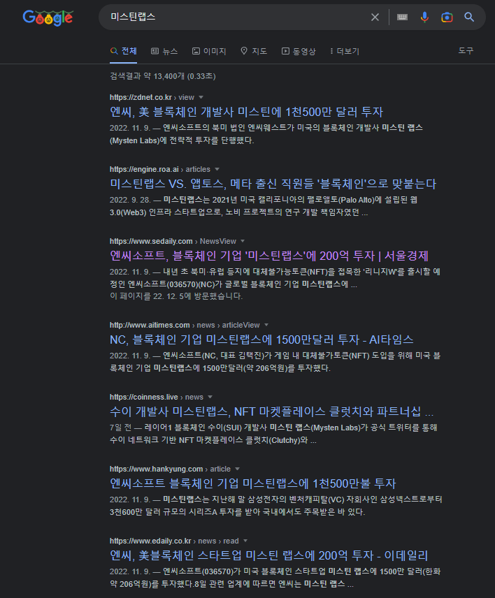 NCSOFT에서 미스틴랩스에 206억 규모의 투자진행