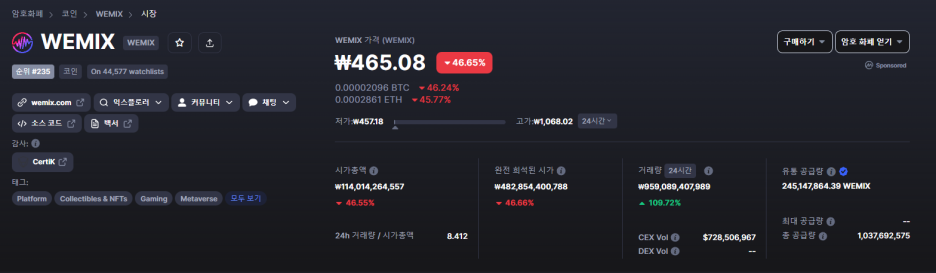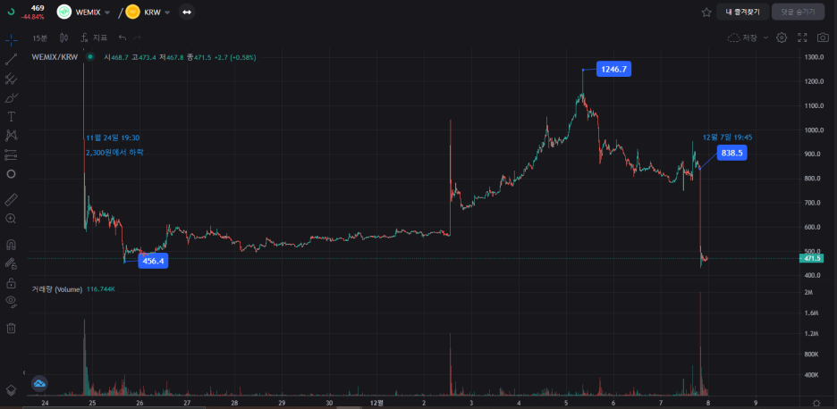 위믹스 상폐 가처분 신청 기각으로 급락 진행됨