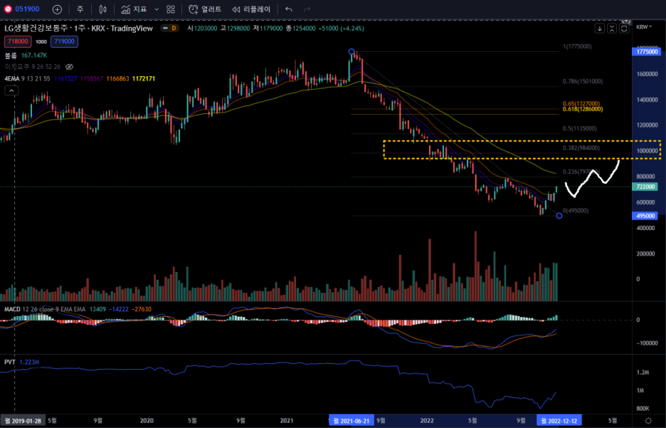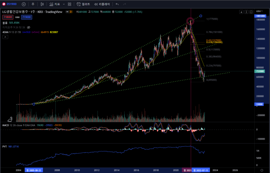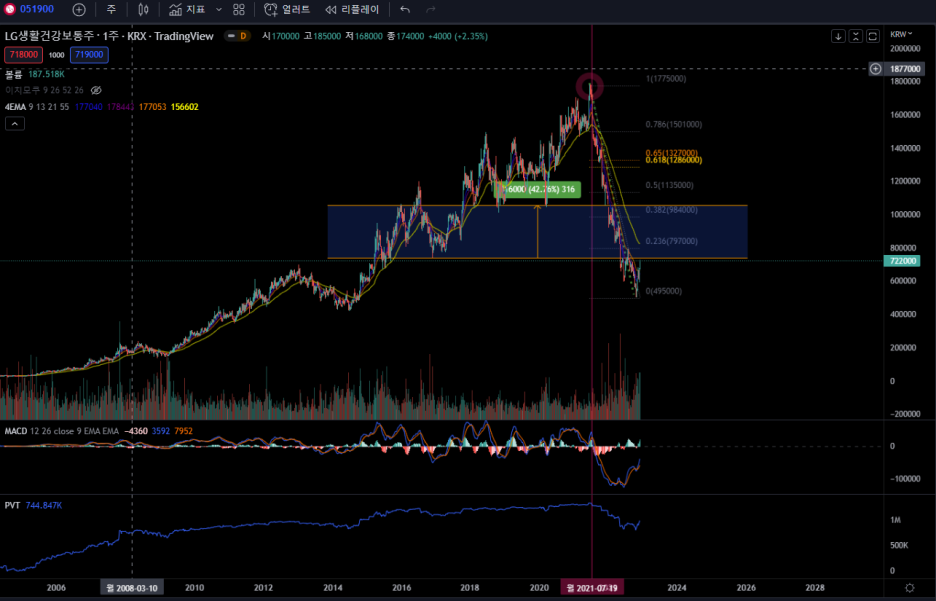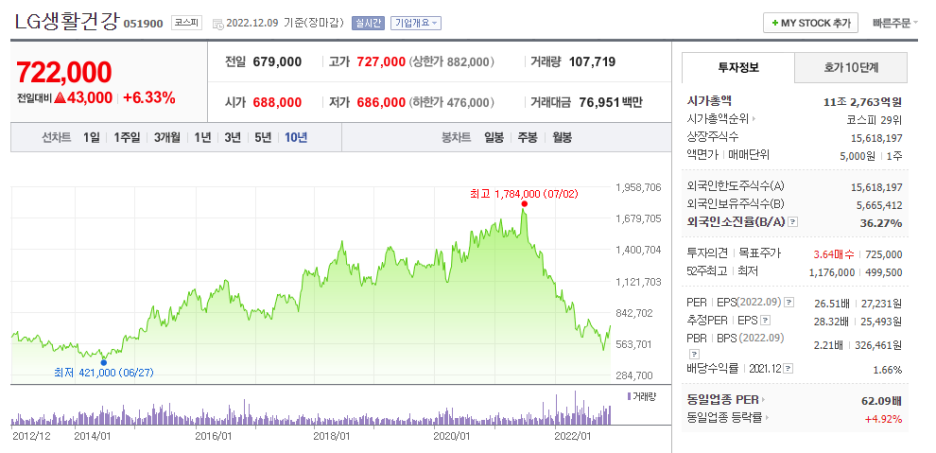 LG생활건강의 경우 2015년대 이후의 가격으로 올라오려면 85만~110만원 레벨까지 치고 올라와야 함