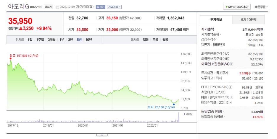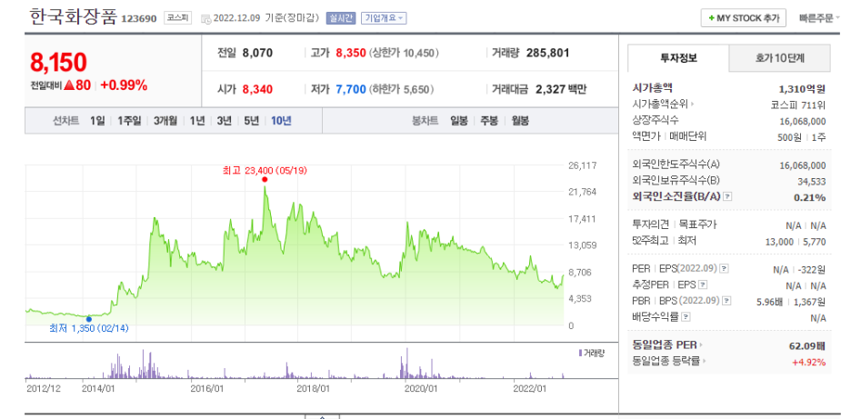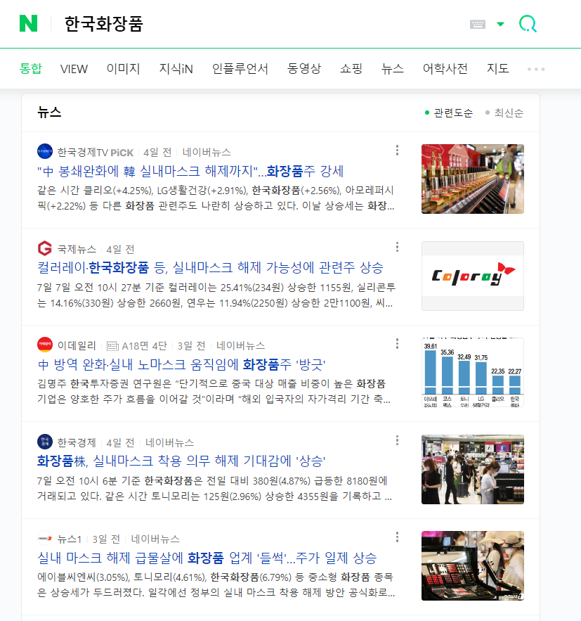 다른 화장품주들도 시장의 반응에 따른 유사한 패턴을 그려가지 않을까 생각