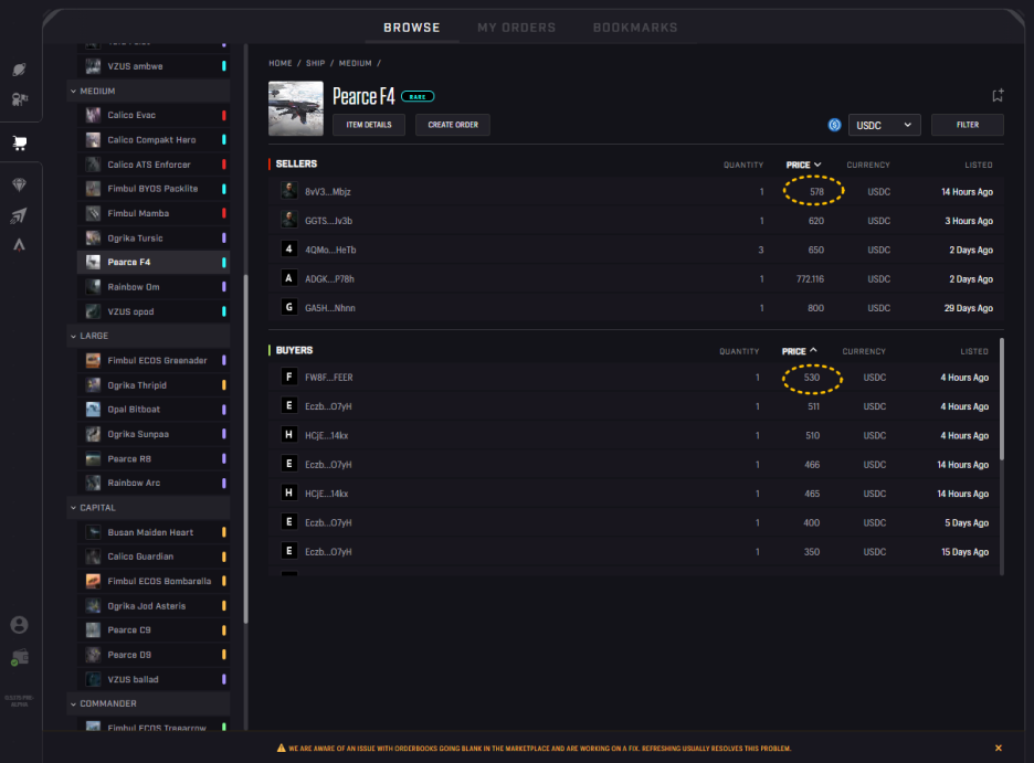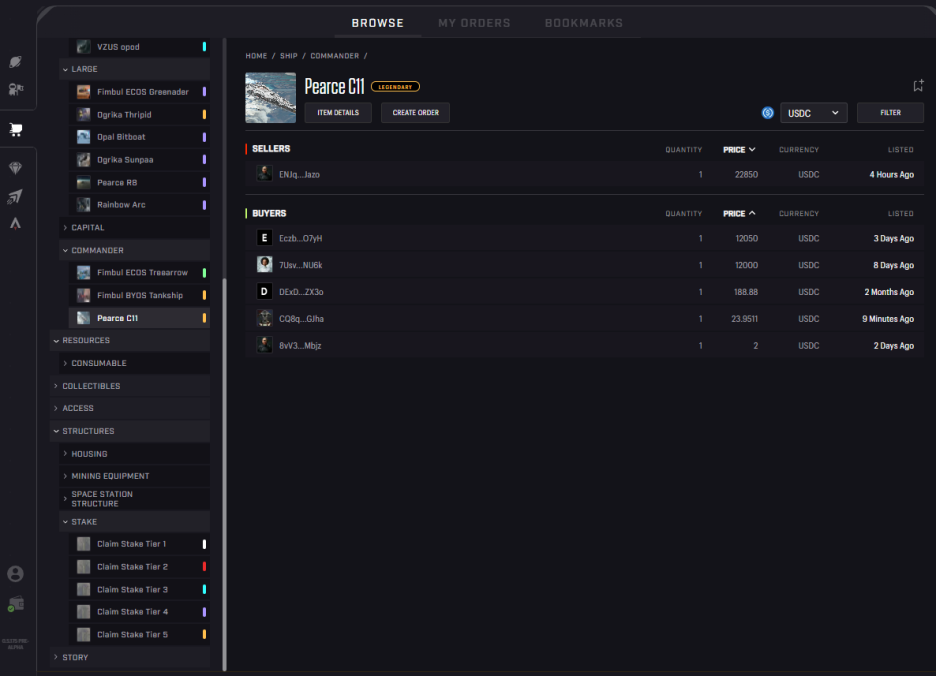 원가격 8,170 USDC에서 FP 1,495 USDC - 매수 주문 1,226 USDC