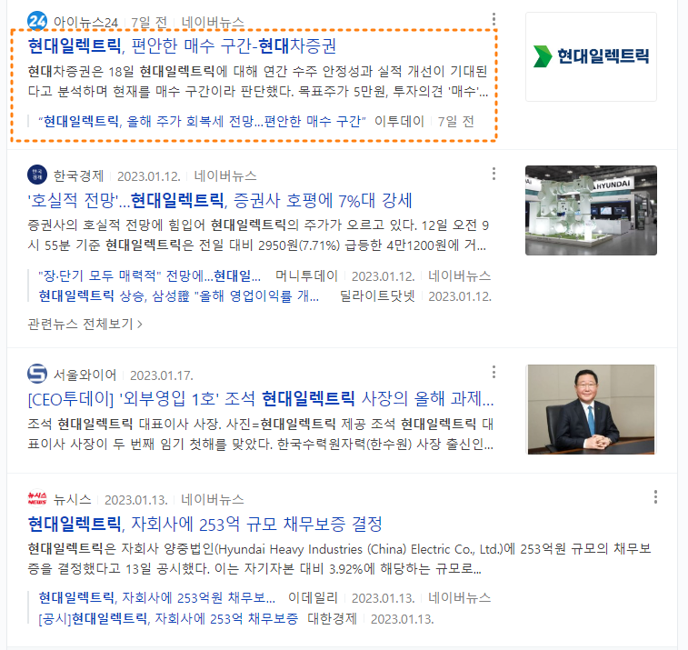 1월 4주차 호시탐탐의 주가 상승 후 횡보군 중 가장 높은 점수를 받은 현대일렉트릭