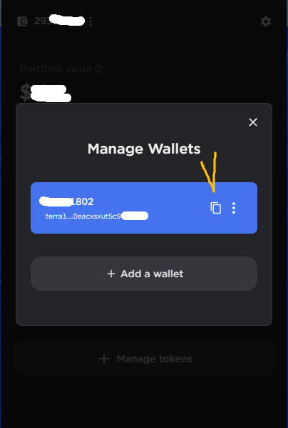 테라스테이션 지갑 주소를 입력하면