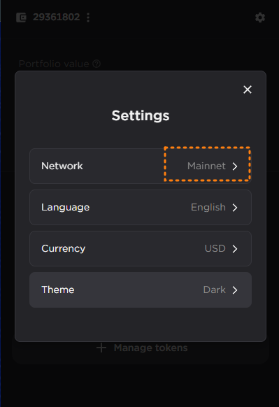 타라파인더에서는 우측 상단에서 네트워크를 변경 가능