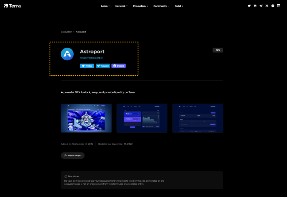 애스트로포트 같은 메인넷 지원의 DEX도 공식 사이트에서 진입 가능함