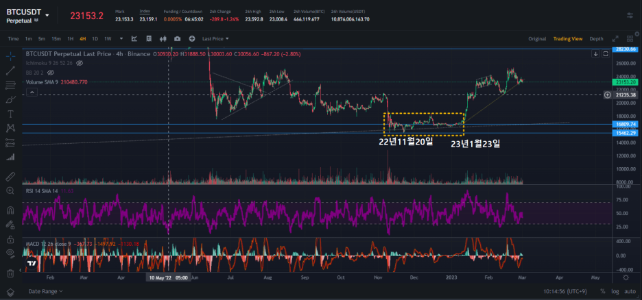 비트코인 방향성에 대한 부분이 아직 나오지 않아서 시장의 23년 2~3월 혼조세가 지속되고 있다.