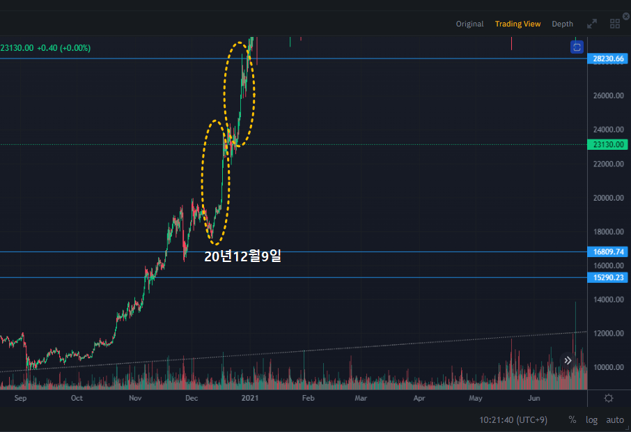 상승으로 도약하기 위해서는 같은 크기의 레벨로 봤을때 요런 크기의 상승이 나와줘야 함
