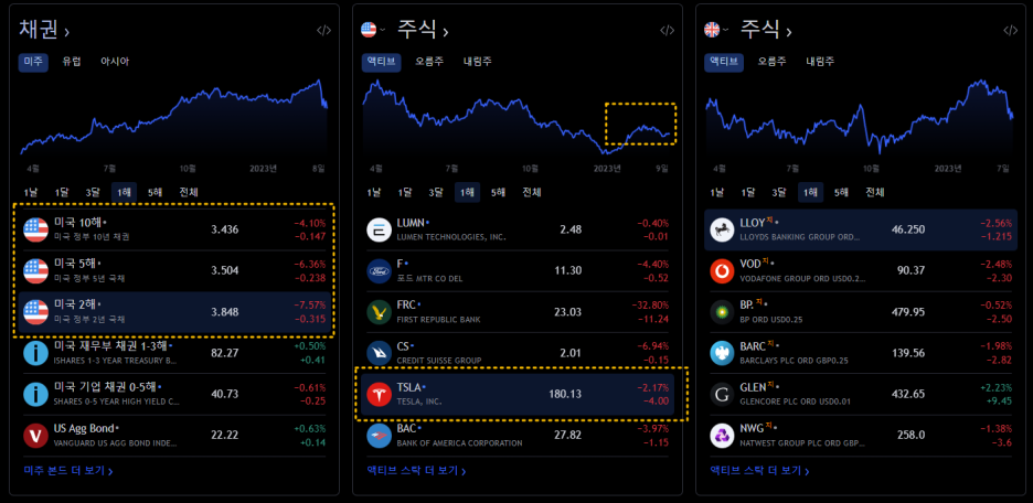 SVB사태를 일으킨 국채 미국 채권 가격 장단기 역전현상, 2년물 단기도 7% 넘게 빠짐