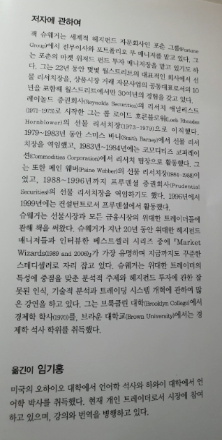 영국과 미국의 주식투자 및 헤지펀드 전문가 잭 슈웨거가 주식이나 (헤지)펀드를 포함한 각종 시장에서 막대한 수익을 올린 `매매의 슈퍼스타 17명과 나눈 인터뷰를 정리한 월스트리트에 관한 베스트셀러 의 완역판이다.짐 로저스, 에드 세이코타, 리처드 데니스, 윌리...